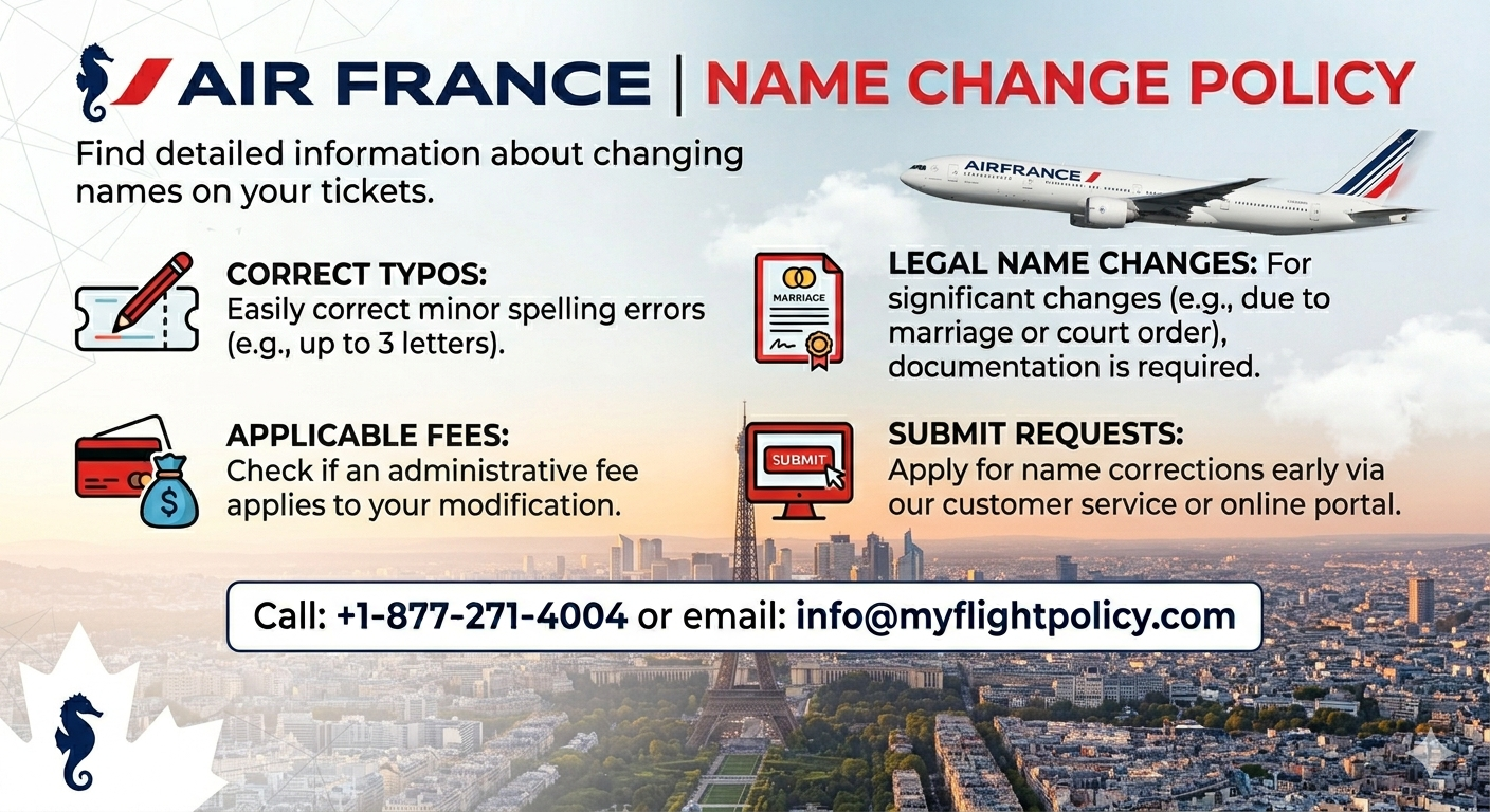 The Air France name change policy allows specific types of corrections.