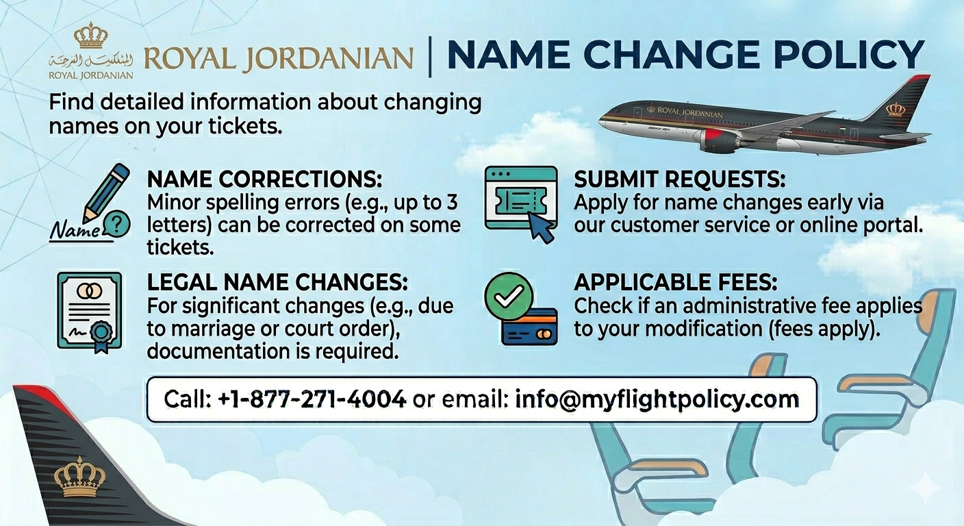 The Royal Jordanian name change policy ensures that the name on your ticket matches your passport or government-issued ID. This is a mandatory requirement for international travel and security compliance.